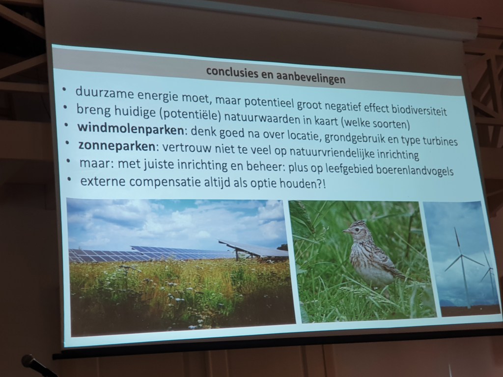 Met veel gevoel voor nuance liet ecoloog Raymond Klaassen weten dat het zo maar plaatsen van windmolens en zonnepanelen niet zonder risico kan gebeuren. Hij heeft uitgebreid onderzoek gedaan naar de effecten op akkervogels. Een verkeerde type turbine en plaatsing (windrichting) kan fatale gevolgen hebben voor de vogelstand.