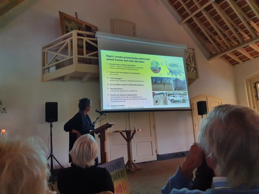 Landschapsarchitect Jannemarie de Jonge en Rijksadviseur voor de fysieke leefomgeving sprak treffend over de ambities om te sturen in mist… Maar ons plassengebied leent zich avant la lettre voor een nieuw energielandschap, zo vervolgde ze haar boeiende presentatie.
