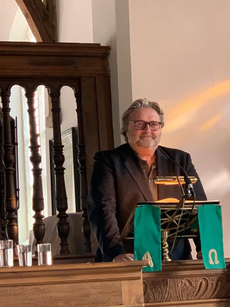 De energie spatte er zondag 16 oktober vanaf bij de presentatie van de plannen om van Vreeland het gelukkigste dorp van de provincie Utrecht te maken (zie ook de Gooi- en Eemlander van maandag 17 oktober). In de volle St Nicolaaskerk pookte ondernemer Ruud Koornstra (zie foto) eerst het vuurtje op met zijn geluksrede. Daarna werden de aanwezigen getrakteerd op een bombardement aan initiatieven die de inwoners voor en met elkaar willen organiseren. Volgend jaar in mei/juni moet dat voor de deelnemers leiden tot een gezondheidsdag en een geluksdiner waar hobbykoks gerechten voor gaan bereiden. Ook ROC Midden Nederland, een opleidingsinstituut gebaseerd op positieve gezondheid, gaat de organisatie daarbij ondersteunen.